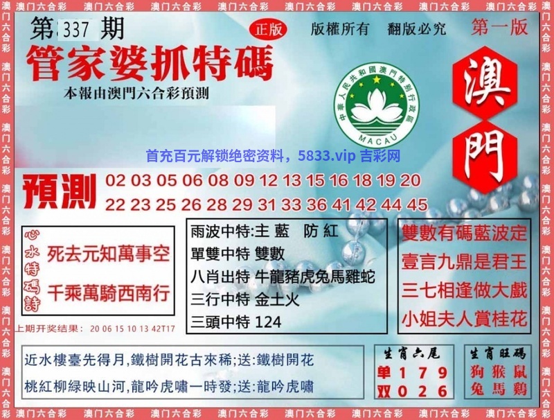 335期:稳一波两头【蓝波+3.4头】狗44准